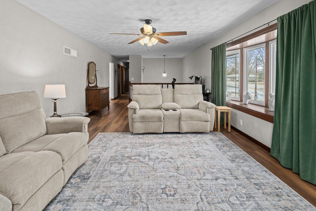 Wonderfully updated split level home sitting on 2 parcels for nearly 1 acre on a quiet cul de sac. 20 minutes to QC and 20 minutes to Muscatine. The many UPDATES include: Main level flooring 2025, kitchen 2025, garage door 2026 (to be installed prior to closing), master shower 2023, HVAC 2023,WH 2023, windows 2021, roof & gutter 2021, septic 2013, septic pumped 2024. Main level includes large living room and large kitchen/dining, 3 bedrooms and main bath as well as a full ensuite. Lower level includes walk out family room, laundry/kitchenette, full bathroom and 2 additional bedrooms. The LP tank is owned, there is a 10x16 utility shed with power. 5 homes share the well at an annual cost of $150. Family room fireplace has not been used in several years so you will want to have it inspected before using. There is a 2 car attached garage with a large work shop in the front. Don't wait to schedule your showing. Seller is offering a home warranty with an acceptable offer.