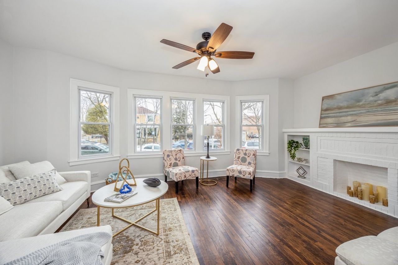 Welcome home to this beautifully remodeled golden octagon brick bungalow offering 5 bedrooms and 2 full updated bathrooms. Enjoy a spacious living room with hardwood floors and an open dining and kitchen combo designed for everyday living and entertaining. The custom kitchen features 42 cabinets, solid surface countertops, stainless steel sink, and stainless steel appliances. The finished basement with a full bath and two entrances provides flexible space for family, guests, or a home office. An open attic with flooring and high ceilings offers great potential for future expansion. Recent updates include a new furnace, new hot water tank, central air, and double-pane windows. Complete with a fenced yard, 1.5-car garage, and side apron parking, this home is move-in ready and full of possibilities.
