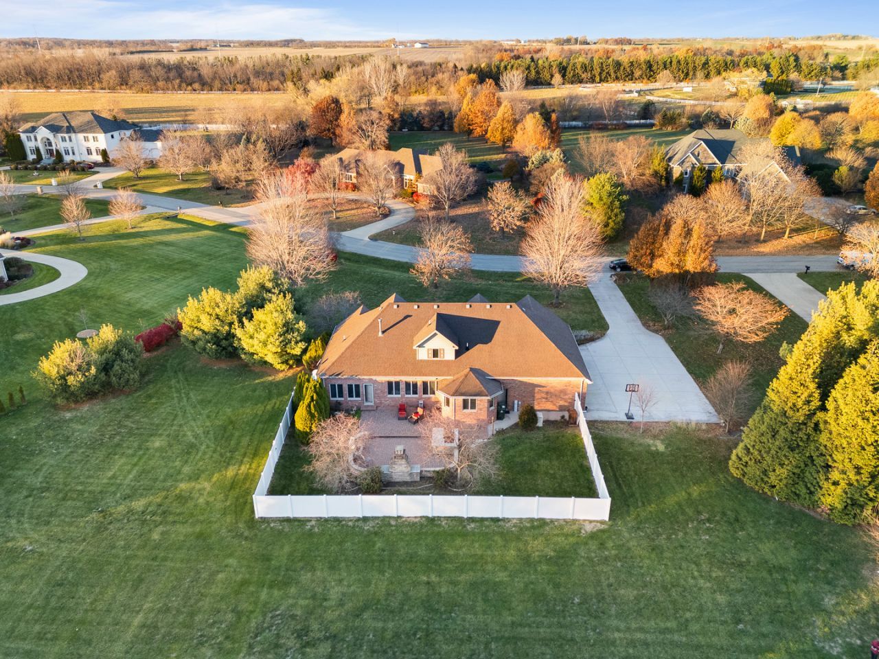 Experience luxury living at its finest in this stunning custom brick home offering over 4,000 square feet of beautifully finished living space set on more than two acres of pristine, park-like grounds. Perfectly situated in an upscale subdivision, this residence provides a rare blend of seclusion and serenity while remaining just moments from top-rated schools, shopping, restaurants, hospitals, businesses, and some of the area's most desirable biking and hiking trails. Designed for exceptional comfort and versatility, this home offers true related-living accommodations and extraordinary craftsmanship throughout. The sun-filled main level features a luxurious primary suite complete with dual walk-in closets, an upscale private bath with whirlpool tub, double quartz vanity, and separate shower. An attached sunroom provides the perfect place to relax, opening to the fenced yard with an expansive paver patio and impressive outdoor fireplace-a magnificent setting for entertaining or unwinding in total privacy. The heart of the home is the spacious and inviting family room, highlighted by a beautiful stone-surround fireplace and abundant natural light. The amazing updated kitchen is a chef's dream, showcasing staggered oak cabinetry with crown molding, stainless steel appliances, a breakfast bar, and pantry. A convenient laundry/mudroom and elegant powder room with granite vanity complete the main living area, along with an additional main-level bedroom ideal for guests or related living. The second level offers two more generously sized bedrooms, including one that provides direct access to a large walk-in attic-a perfect opportunity to finish for even more living space. The fully finished basement, designed to elevate related living possibilities, boasts heated floors, a spacious recreation room (pool table included), a second full kitchen, a fifth bedroom, and a beautifully appointed full bath with oversized shower and granite vanity. There is also abundant storage, making the lower level as functional as it is luxurious. Offering exceptional privacy, impressive craftsmanship, and unmatched flexibility, this remarkable property delivers the ultimate blend of elegance, comfort, and convenience-an extraordinary place to call home.