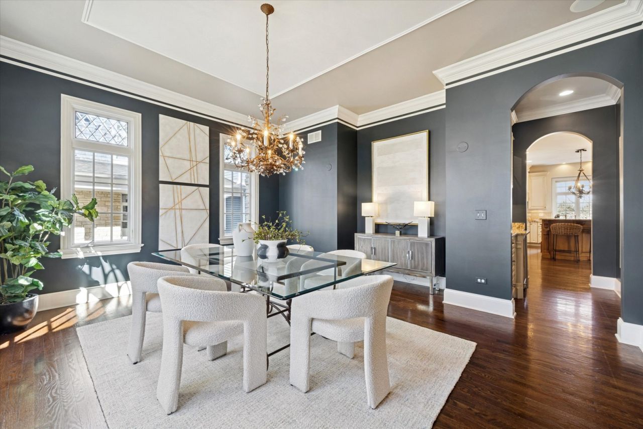 Custom built by Creber Construction in 2003 and set on a rare 80' wide lot in the coveted Field Park neighborhood, this distinguished residence showcases exceptional craftsmanship, generous millwork, and refined architectural detail throughout. Leaded glass mahogany wood double entry doors open to a dramatic two-story foyer anchored by a sweeping double staircase. Designed for both elegant entertaining and everyday living, the home features 10' ceilings on the main level, two fireplaces, a formal Dining Room with butler's pantry, and a beautifully appointed chef's kitchen with custom cabinetry, expansive table space, a substantial island with seating and storage, and newer appliances. The Family Room is richly appointed with walnut built-ins and a striking stone fireplace. A private main-level study with cherry wood built-ins, leaded glass window and separate patio access offers flexibility, complemented by a rare dedicated family office with maple custom cabinetry. Main level mudroom welcomes family and pets from the backdoor entrance and features a designated half bath, maple custom cabinets and lockers, storage bench, a walk-in coat closet, built-in pet food or trash compartment and pantry closet. Upstairs, 9' ceilings and new carpeting enhance the second level. The primary suite is a luxurious retreat, complete with tray ceiling, expansive organized walk-in closet, and a spa-inspired bath featuring a soaking tub, walk-in shower, and dual vanity with custom walnut cabinetry and granite counters. Secondary bedrooms enjoy en suite bath access, including a thoughtfully designed Jack-and-Jill arrangement with private vanities. A third-level flex space provides endless possibilities for recreation, media, or creative pursuits. The finished lower level (2016) with 9' ceilings and LVT flooring offers impressive additional living space, including a kitchenette, recreation and game areas, exercise room, bedroom, full bath, storage, and included pool table. Outdoor living is equally inviting with a brick paver patio, sit wall, and gas line for seamless grilling. Ideally located just moments from downtown Western Springs, Metra access, restaurants, shops, and top-rated schools, with convenient access to I-294 and both airports - a timeless and beautifully executed home in one of the western suburbs' most sought-after communities.