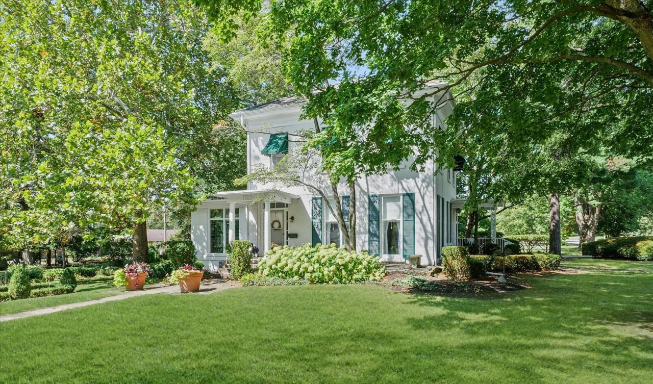 Step into Paxton's history with the town's oldest brick home, built with enduring double-wall brick construction and showcasing timeless Greek Revival architecture accented with Italianate details. Spanning over 1,900 square feet, this 3-bedroom, 1.5-bath residence is filled with character-10-foot ceilings, hardwood floors, floor-to-ceiling windows, an open staircase, arched doorways, door transoms, and beautifully preserved trim work. The handmade kitchen cabinetry, exposed brick wall, vaulted ceiling, and built-in pantry add both charm and function, while the dining room's wainscoting and shelving echo classic craftsmanship. A sunroom, medallion accents, lace curtains, and patterned wall coverings complete the home's elegance. Sitting on 5.5 lots-just over an acre-the property features elaborate gardens, mature trees, walking paths, and a decorative log cabin. Very well maintained, this remarkable property blends historic integrity with everyday comfort.
