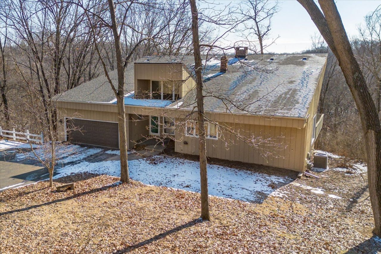 Stunning Contemporary Ranch Home on 5 Acres Nestled amidst nature, this beautiful three-bedroom, three-bath ranch home offers the perfect blend of comfort and elegance. Overlooking five acres of timber, the property is teeming with wildlife, providing a serene backdrop. The home features a spacious family room with a cozy fireplace and a wet bar, perfect for entertaining. The upper-level living space boasts natural lighting, vaulted cathedral ceilings, and a second fireplace, adding to the charm. A three-season sunroom off the kitchen is the ideal spot to unwind and enjoy the views. The kitchen is equipped with ample cabinetry, a breakfast bar, and all appliances included. In addition, the home features a luxurious sauna, perfect for relaxation and wellness. There are also several workshop areas, including a heated and insulated two-car garage, as well as a second attached garage. The property also boasts beautiful landscaping, a deep driveway leading to privacy, and a luxurious hot tub for ultimate relaxation. With ample storage throughout, this home truly has it all. This home has a new roof as of 2025.