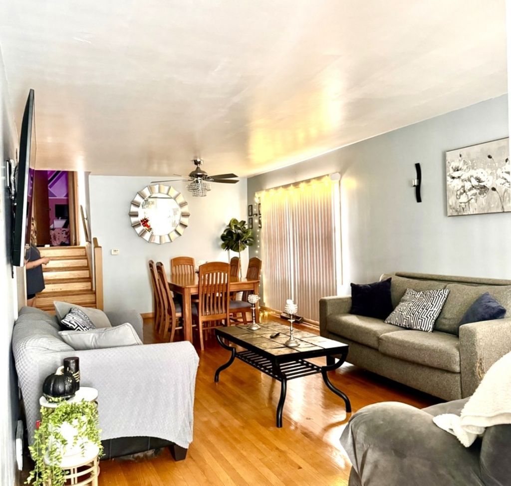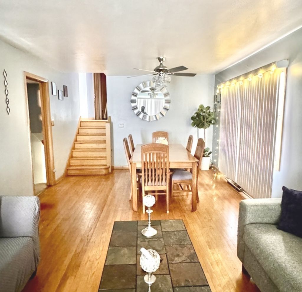 Gorgeous brick 3 bedroom 1.1 bath Scottsdale split level features an inviting front porch, gleaming hardwood floors, a bright living room, formal dining area, huge eat in kitchen with oak cabinetry, custom tile counter-tops, pantry. The second level features three good sized bedrooms and full bath with vanity and tile work. The lower level has a spacious family room, and laundry/utility room. Beautifull fenced yard, nice concrete patio and party door access to the garage. Detached 2 car garage with alley access. Roof change (2020), basement waterproofing (2019), some newer windows except living room and dining room (8 years), garage roof, furnace and central air (2011). Great location near downtown Chicago, Durkin Park Elementary school, shopping, restaurants and parks!