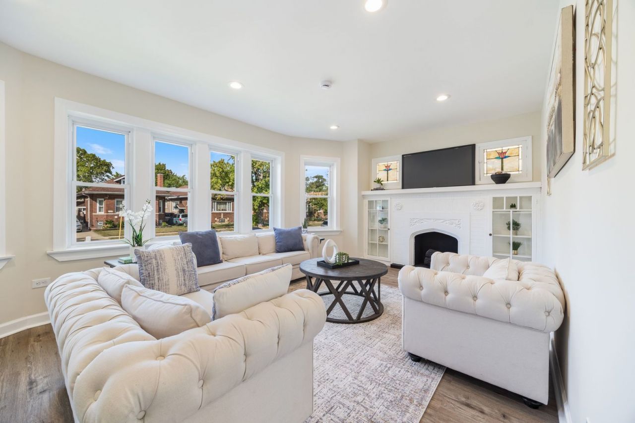 This gorgeous Rehab brick bungalow has a blend of historic character with modern updates. The main level showcases a spacious inviting living room with a fireplace . Beautiful kitchen with quartz countertops and white custom cabinets, two spacious bedrooms and two bathrooms. Hardwood flooring . The primary bedroom is a spacious tranquil retreat with a huge walk-in closet. The lower level finished basement boasts a 3rd bedroom and full 3rd bathroom. . Don't miss out on this exceptional opportunity! Schedule your private showing today!